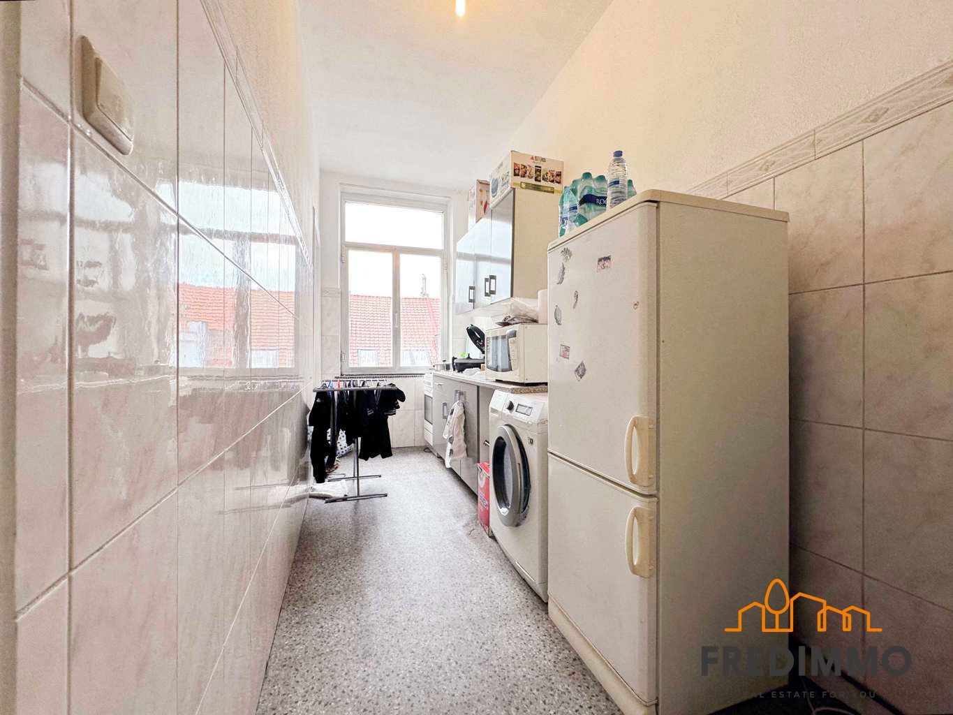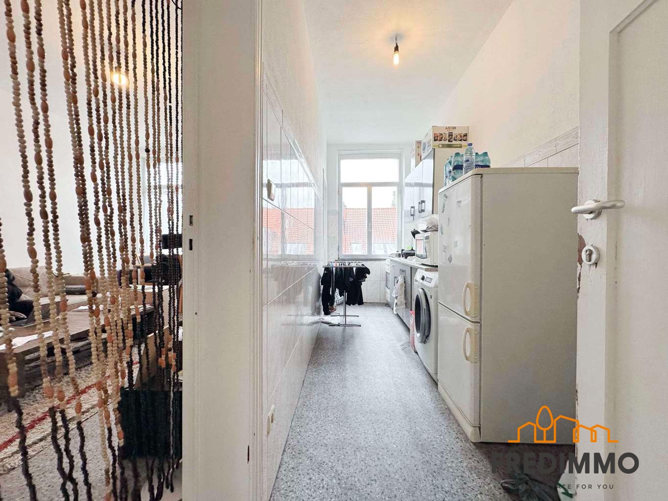 Dans une rue calme et à sens unique, situé entre la Porte de Hall et l’avenue du Roi, appartement 1 chambre de +/-50m² brut sis au 3ème étage et dernier étage de l’immeuble. L’appartement est très lumineux. Il se compose d’une pièce de vie, une grande chambre et une cuisine séparée, une salle de douche avec lave mains et une toilette. Petite copropriété en création de 4 appartements et 1 studio. Chaudière individuelle au gaz. Compteurs individuels pour l’eau et l’électricité. Compris dans le prix 4.000€ pour constituer un fond de réserve pour effectuer les travaux d’isolation des façades arrières de l’immeuble. Il faudra rajouter au prix de vente environ 1.000€ pour la rédaction de l’acte de base.