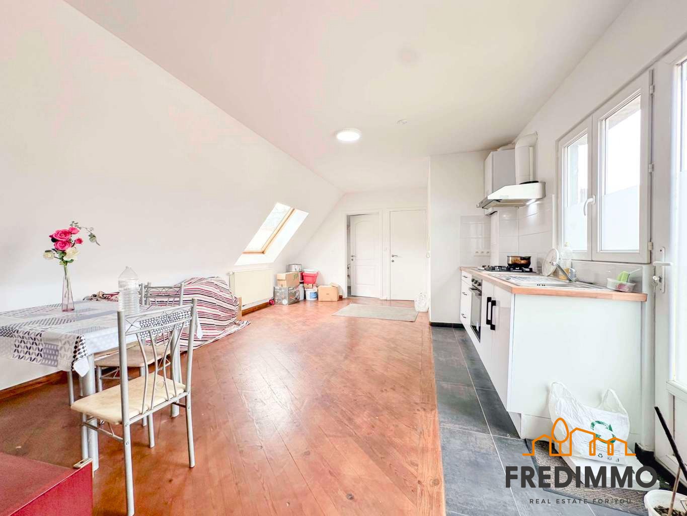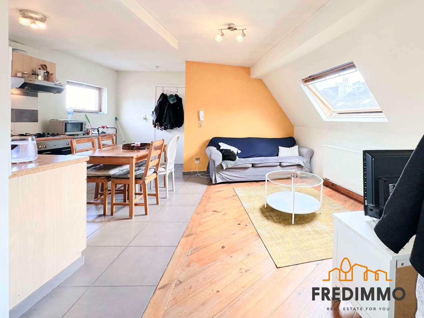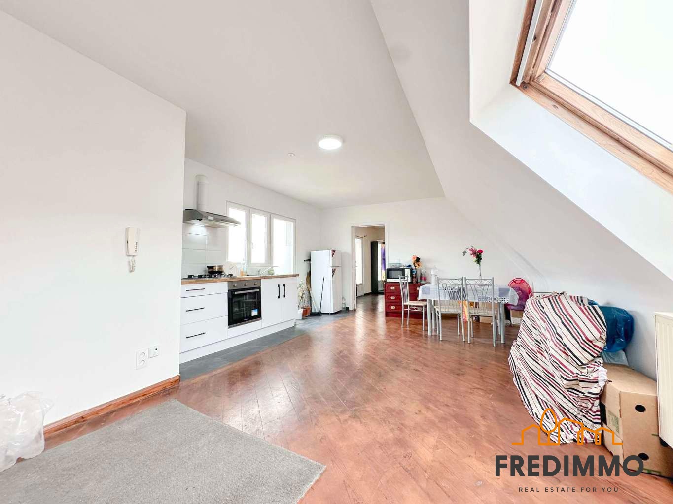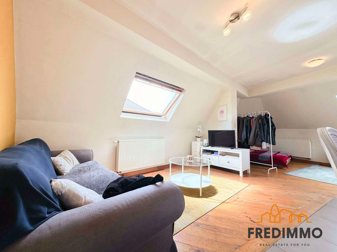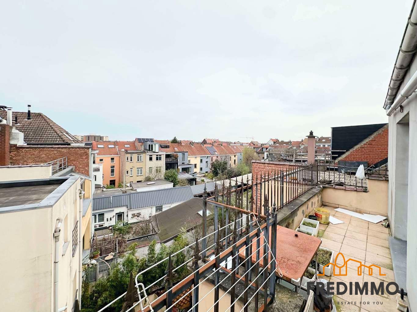 Appartement met 2 slaapkamers en een bruto vloeroppervlakte van +/- 109 m² gelegen op de 3e en bovenste verdieping van een klein gebouw met plat dak/terras van +/- 10m2. Het is momenteel verdeeld in 2 verhuureenheden: 1 appartement met 1 slaapkamer bestaande uit een woonkamer, eetkamer met open keuken en toegang tot het terras, een ruime slaapkamer en een badkamer met douche en toilet. Momenteel verhuurd voor €750/maand + kosten. En 1 studio-appartement, bestaande uit een keuken, een woonkamer met een ruime slaapkamer en een badkamer met toilet. Momenteel verhuurd aan 530€/maand + kosten. De situatie van rechtswege en erkend door de stedenbouwkundige autoriteiten, is een 1 flat met 2 slaapkamers, een grote woonkamer, een hal met trap, een badkamer met douche, een badkamer, een keukenhoek in de eetkamer en een keukenkamer (Plan beschikbaar op mijn site). Zeer lage gemeenschappelijke en privé lasten!