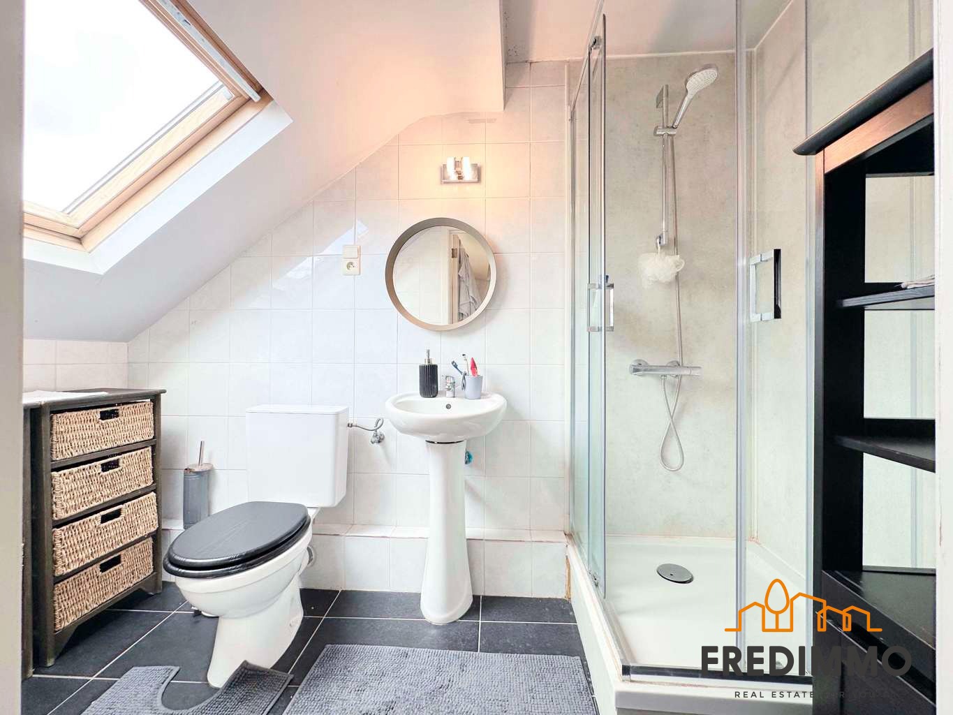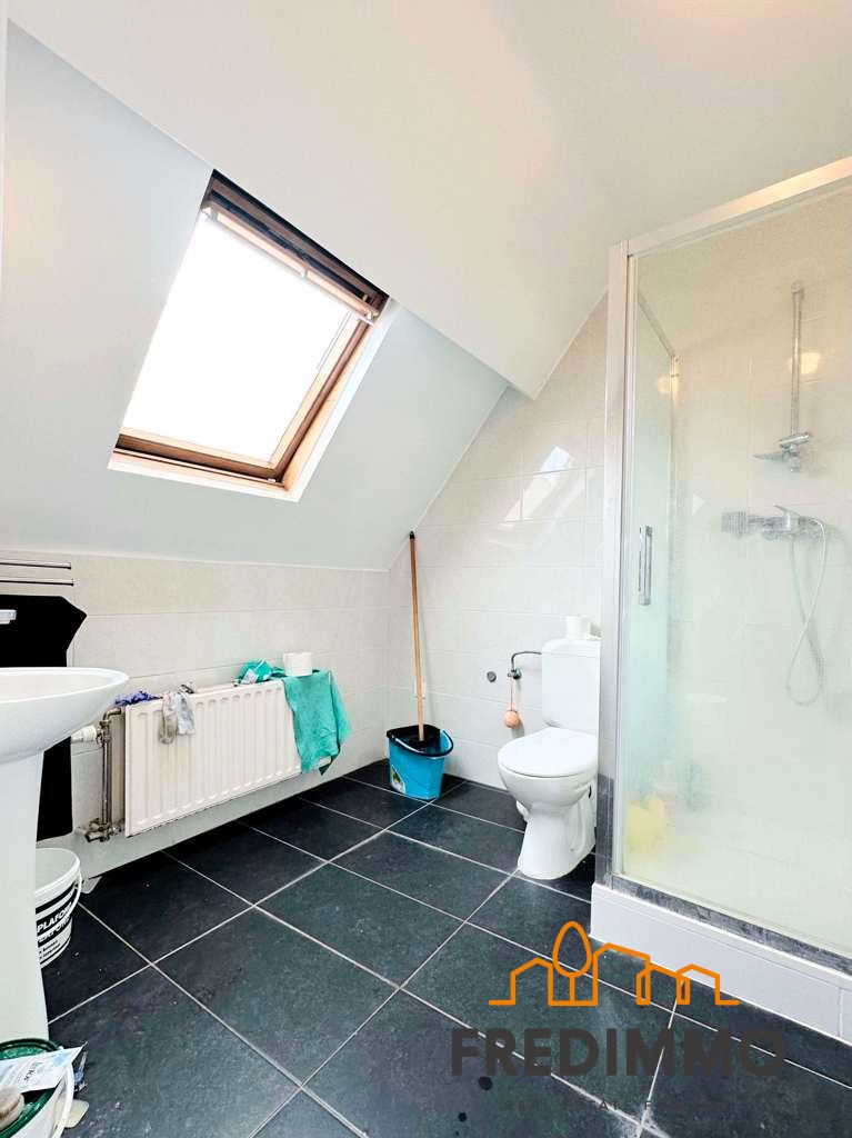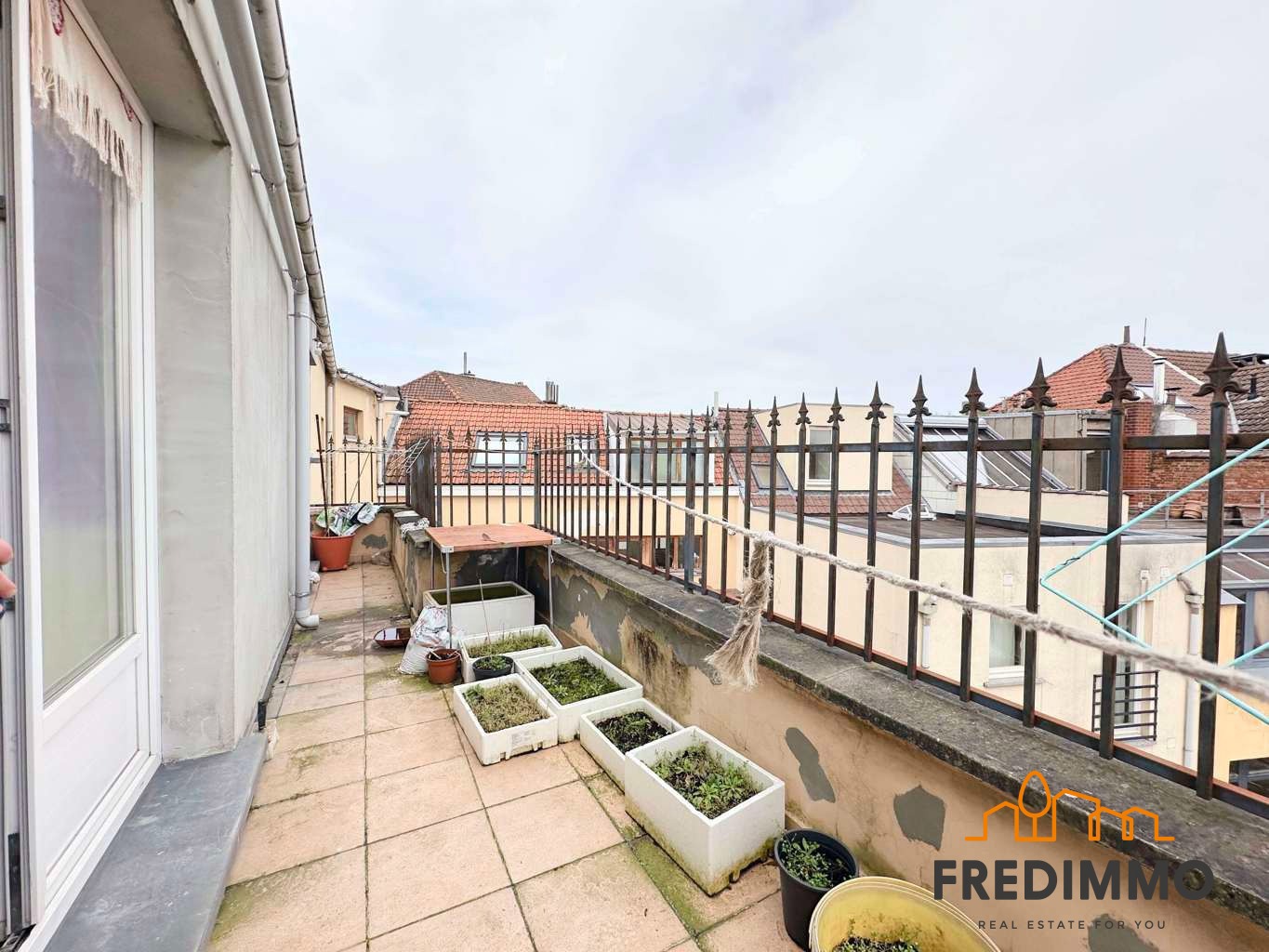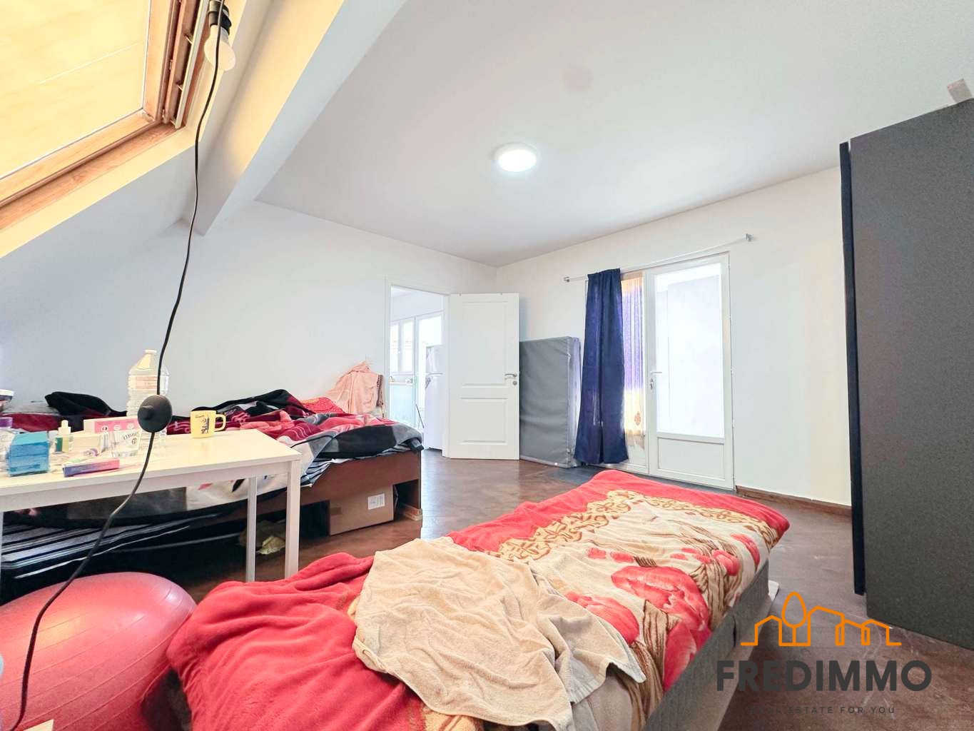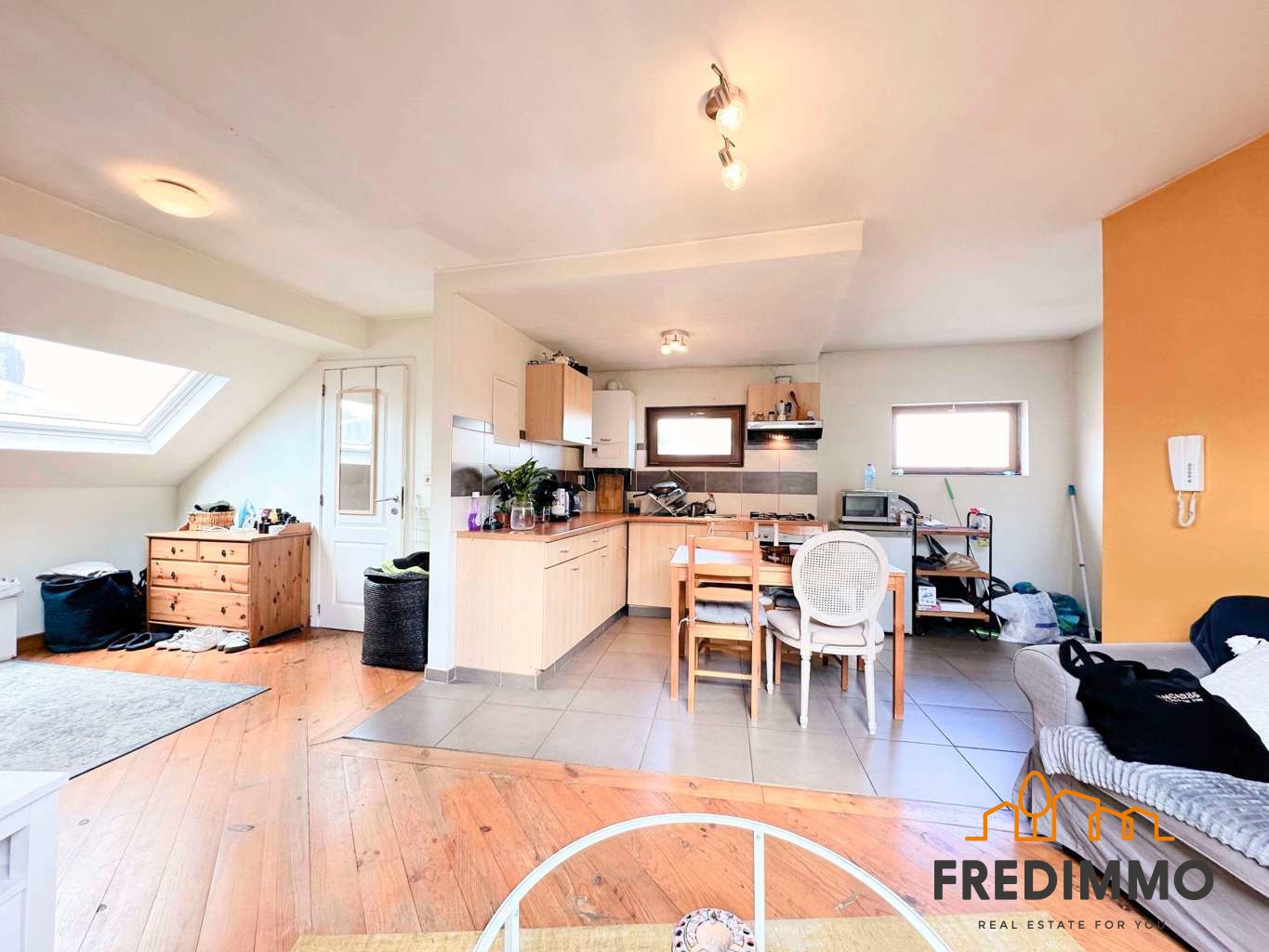 Appartement met 2 slaapkamers en een bruto vloeroppervlakte van +/- 109 m² gelegen op de 3e en bovenste verdieping van een klein gebouw met plat dak/terras van +/- 10m2. Het is momenteel verdeeld in 2 verhuureenheden: 1 appartement met 1 slaapkamer bestaande uit een woonkamer, eetkamer met open keuken en toegang tot het terras, een ruime slaapkamer en een badkamer met douche en toilet. Momenteel verhuurd voor €750/maand + kosten. En 1 studio-appartement, bestaande uit een keuken, een woonkamer met een ruime slaapkamer en een badkamer met toilet. Momenteel verhuurd aan 530€/maand + kosten. De situatie van rechtswege en erkend door de stedenbouwkundige autoriteiten, is een 1 flat met 2 slaapkamers, een grote woonkamer, een hal met trap, een badkamer met douche, een badkamer, een keukenhoek in de eetkamer en een keukenkamer (Plan beschikbaar op mijn site). Zeer lage gemeenschappelijke en privé lasten!